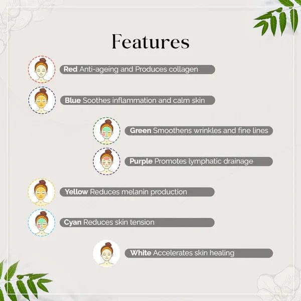 - Cyan Light 🟦: Soothes irritated skin and promotes relaxation.